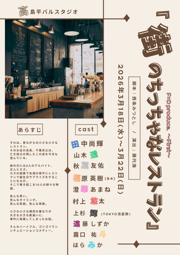 舞台「街のちっちゃなレストラン」出演のお知らせ